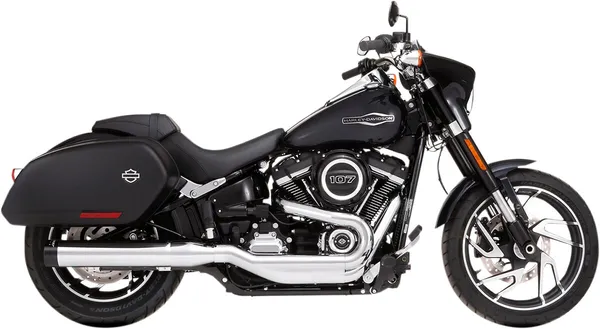 Ce modèle arbore une finition chromée avec embout noir “Straight-Cut”, idéale pour s’intégrer parfaitement au style custom de la Softail. Livré avec un pare-chaleur assorti, il garantit une ligne harmonieuse sans rupture visuelle sur le côté droit de la moto. Le design reste discret, racé et élégant, sans surcharger l’esthétique globale du véhicule.