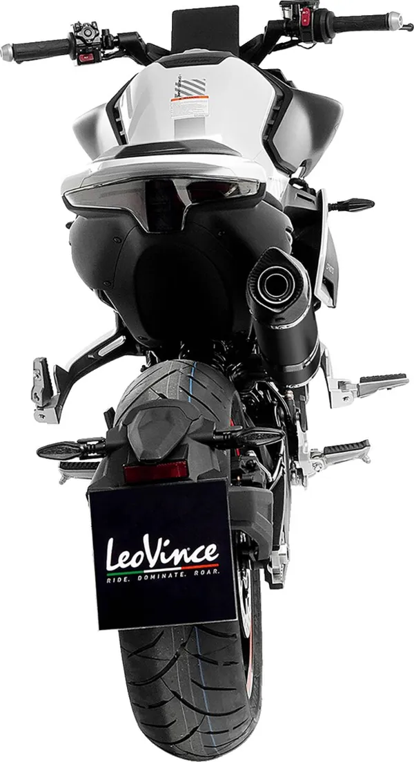 Ce modèle se distingue par son embout en carbone véritable, au design Shark Cut, orienté vers l’esthétique tout en aérodynamisme. La sangle de fixation en carbone intégral assure une tenue solide tout en conservant un faible poids et une résistance élevée à la chaleur. Le logo LeoVince gravé au laser sur le corps ajoute la touche de raffinement propre à la marque italienne.