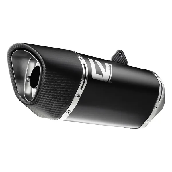 Le silencieux LV-14 R Black Edition adopte un corps en acier inoxydable noir, reconnu pour sa robustesse et sa résistance à la chaleur. Il est surmonté d’un embout en fibre de carbone au style tri-ovale, qui accentue sa silhouette moderne et dynamique tout en assurant une dissipation thermique efficace. Chaque soudure TIG est réalisée à la main par des spécialistes, gage d’une finition soignée et d’une longévité accrue.