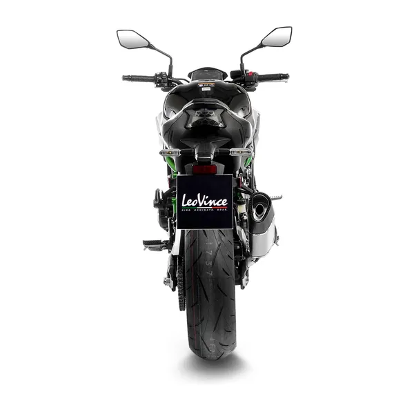 Fruit de plus de 70 ans d’expérience en ingénierie moto, le silencieux LV-14 R se démarque par son format tri-ovale inspiré des motos de compétition, associé à une sortie conique en fibre de carbone sombre pour une finition à la fois discrète et racée. Son esthétique s’accorde parfaitement avec la ligne nerveuse de la Z900.