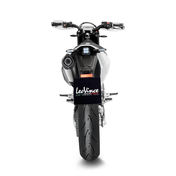 Ce modèle affiche un design compact, anguleux et asymétrique qui s’harmonise parfaitement avec les esthétiques modernes. Avec son embout slash-cut en fibre de carbone noir, le LV One Evo propose un look unique et racing. Le logo LeoVince est finement gravé au laser, témoignage de l’attention portée aux détails.