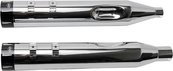 Les silencieux MK45 adoptent une configuration Slip-On de 4.5 pouces (11,5 cm de diamètre extérieur), permettant une installation simple sur vos collecteurs d’origine, sans modification majeure. Avec leur finition chrome brillante associée à des embouts Tracer noirs en aluminium usiné, ce modèle offre un look moderne avec une touche agressive qui sublime l’arrière de votre Harley.