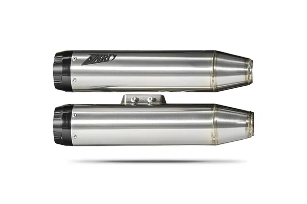 Fabriqués en acier inoxydable AISI 304 de haute qualité, les silencieux ZARD Slip-On se distinguent par leur solidité et leur finition brute. L’embout anodisé noir en aluminium vient parfaire l’ensemble avec une touche élégante et agressive. Leur format compact s’intègre parfaitement au style épuré de la gamme Softail et leur montage en position droite assure une ligne fluide avec les courbes de la moto.